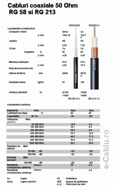 Cablu coaxial 50 Ohm pentru radiofrecventa RG 58 si RG 213